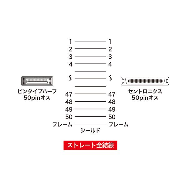 ●ピンタイプハーフ50pinとセントロニクス50pinを接続するケーブルです。