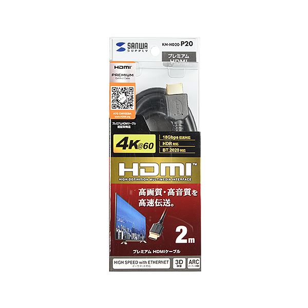 サンワサプライ プレミアムHDMIケーブル2m黒 KM-HD20-P20