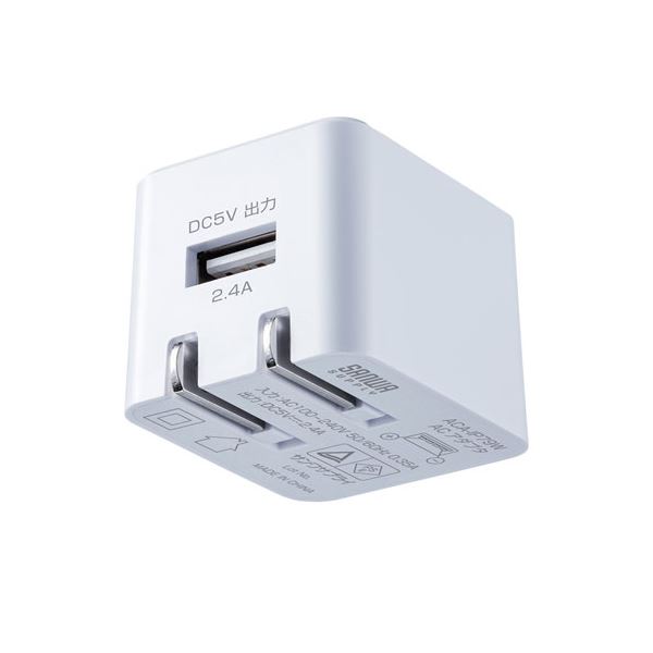 サンワサプライ キューブ型USB充電器(2.4A・ホワイト) ACA-IP79W