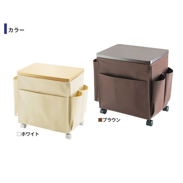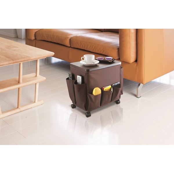 ティッシュや新聞、リモコンなどソファや座椅子のそばにあると便利なものをまとめて収納できるサイドテーブルワゴン。