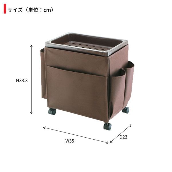 ワゴン内部には大きな収納スペースがあり、かさのある小物類をたっぷり収納でき、カバー付きで外からの目も気になりません。