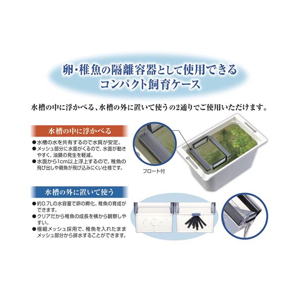 卵・稚魚の隔離容器として使用できるコンパクト飼育ケースです。