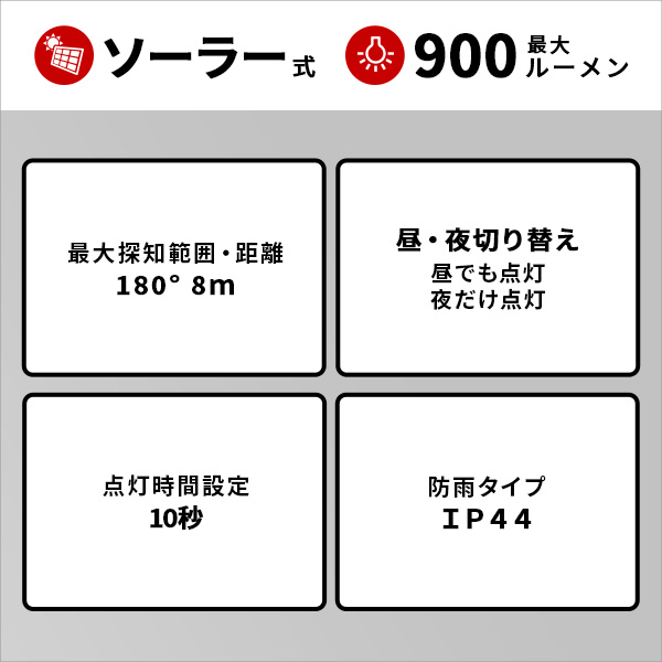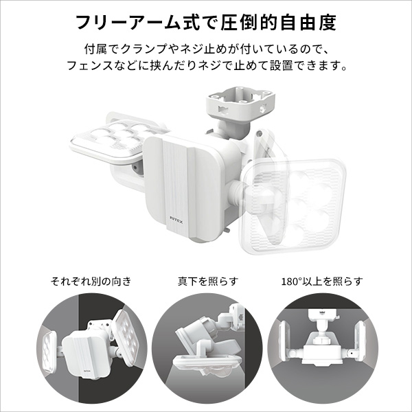 最大探知範囲は180°12mで強力な防犯用アイテムとしてお使い頂けます。
