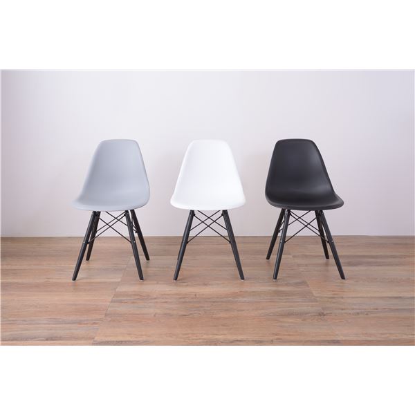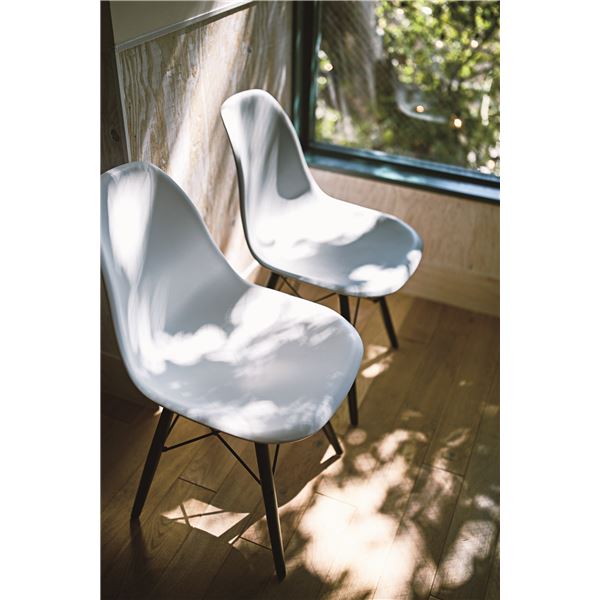モノトーンで統一されたシンプルなチェア。ミッドセンチュリーなデザインも様々な空間に溶け込みます。
