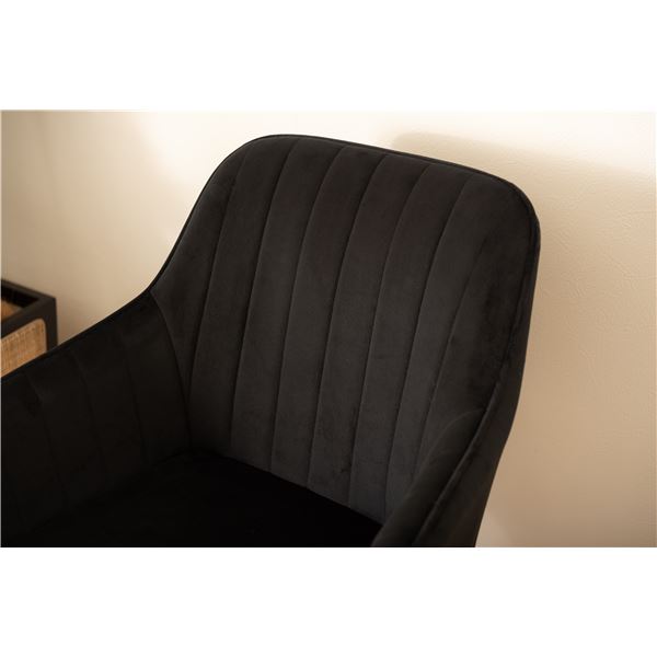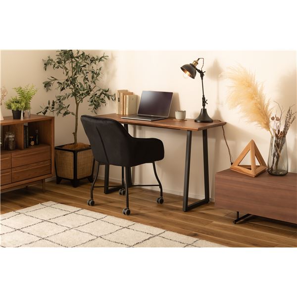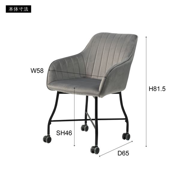 ベロアの上質な質感と脚のなめらかなカーブが美しいチェア。キャスター付きで移動もスムーズで使い心地抜群です。