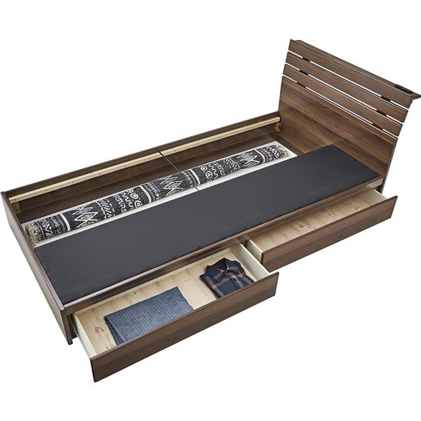 ベッド 寝具 約幅99cm ブラウン 引き出し付き 宮付き 組立品 マットレス別売 ベッドフレーム ベッドルーム 寝室 引越し【代引不可】