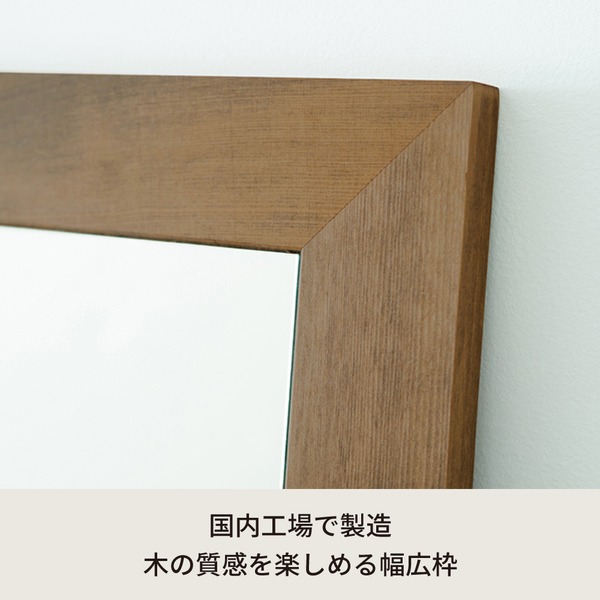 幅広枠ウォールミラー(55×80)(アンティークブラウン/茶) 天然木/姿見鏡/ワイド/高級感/木製/飛散防止加工/壁掛け/北欧風/ヴィンテージ/日本製/完成品/NK-33