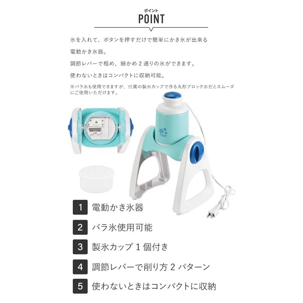 クールリッチ 2通り削れる電動かき氷器 ミントグリーン D-6623