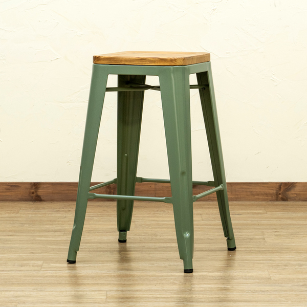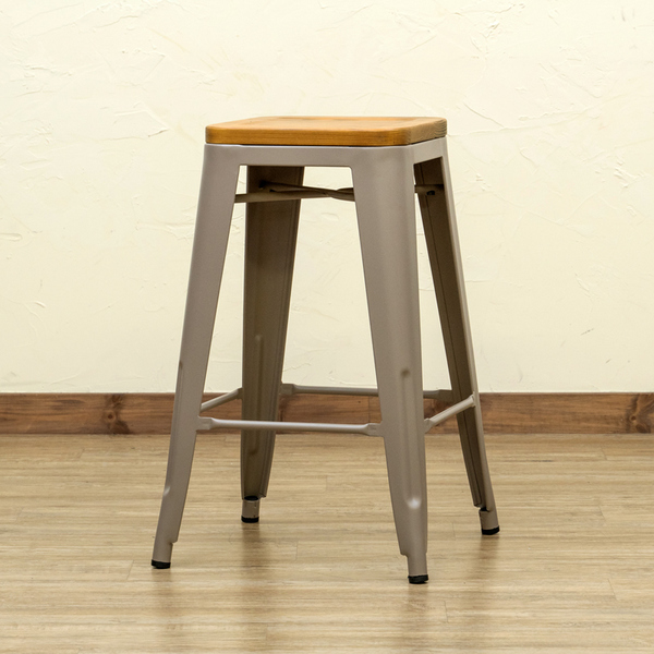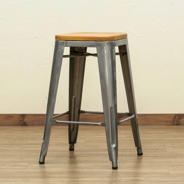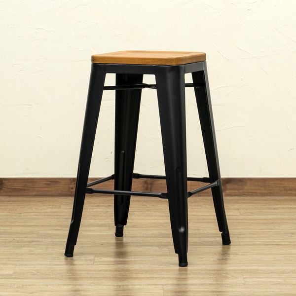 天然木の座面と重厚感のあるスチールを組み合わせたバースツールです。