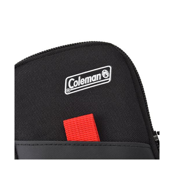 スマートフォンなどの収納に便利なColemanライセンスのマルチポーチ。6.5インチのスマートフォンがジャストフィットするサイズ。縦横ベルトループに加えカラビナが付いているので好きなところに携帯可能。