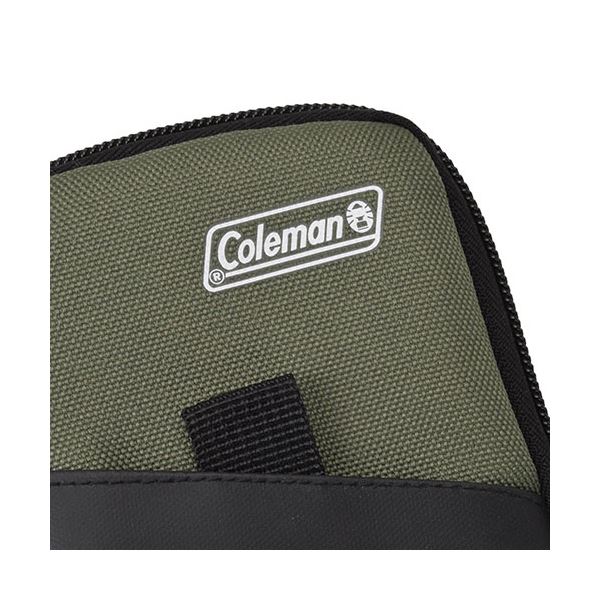 スマートフォンなどの収納に便利なColemanライセンスのマルチポーチ。6.5インチのスマートフォンがジャストフィットするサイズ。縦横ベルトループに加えカラビナが付いているので好きなところに携帯可能。