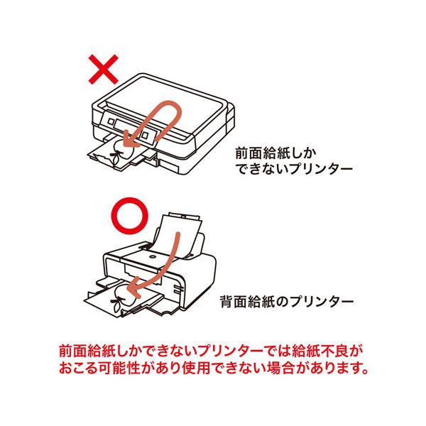 ※用紙の構造上、hp・NEC製プリンタやエプソンプリンタEP-902A/901A/901F/802A/801A/など前面給紙で、用紙が鋭角に曲がる機種では給紙不良がおこる可能性があり、ご使用いただけません。