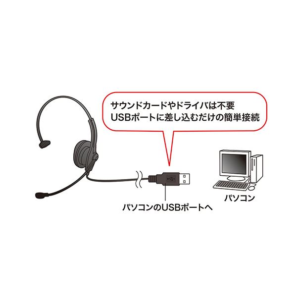 サンワサプライ USBヘッドセットブラック MM-HSU03BK 1個