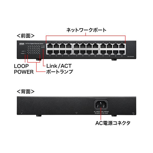 サンワサプライ Giga対応スイッチングハブ 24ポート・ループ検知機能付き LAN-GIGAH24L 1台