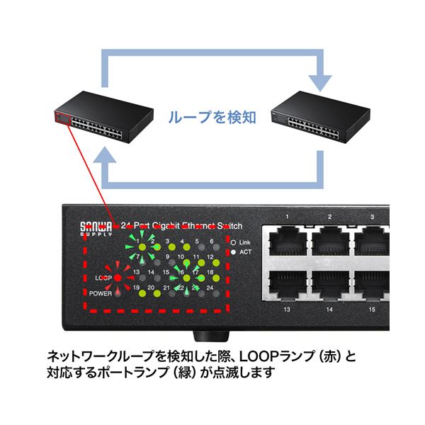 ●ループ検知機能を搭載しており、ループ障害を知らせます。