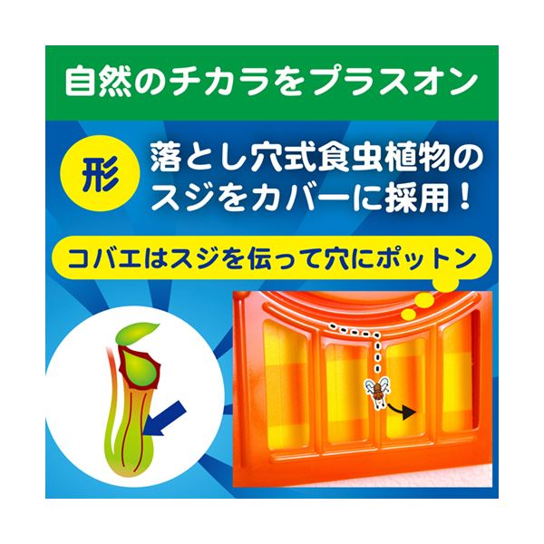 ●容器は、コバエとハエが好きなクリアオレンジを採用。粘着シートはオレンジに黄色のアクセントを追加。2種類のオレンジを重ねることで誘引効果がアップ!