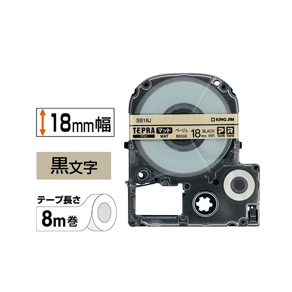 (まとめ)キングジム テプラ PROテープカートリッジ マットラベル 18mm ベージュ/黒文字 SB18J 1個【×3セット】