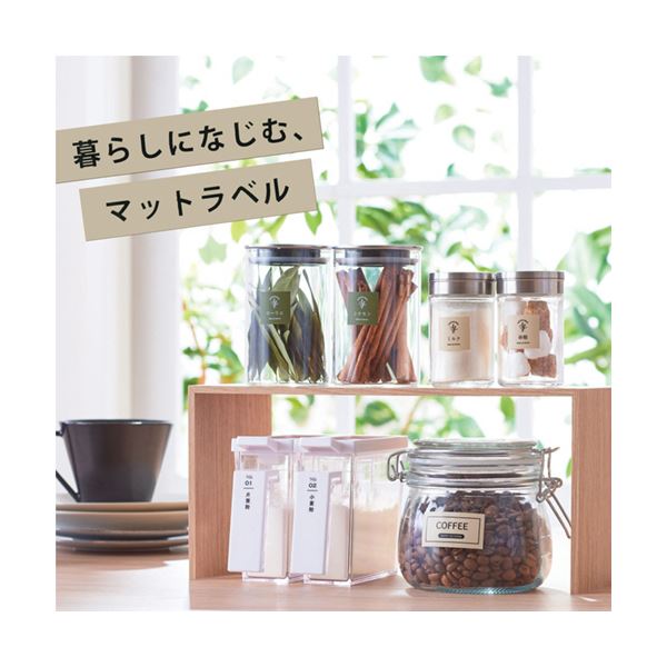 ●落ち着いた色彩と上品な質感のマットラベル。テープ幅18mm・ラベル色はベージュ、黒文字です。