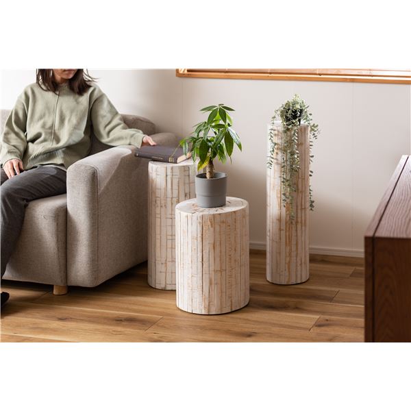 プランタースタンド 約直径25×高さ53cm ホワイト 木製 グリーンベース 完成品 リビング 店舗 観葉植物用 インテリア家具