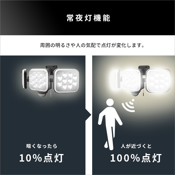 最大4000ルーメンの14W×3灯フリーアーム式LEDセンサーライト!