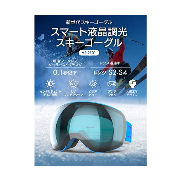 【スマート液晶調光スキーゴーグル】は光の量に応じ、僅か0.1秒でレンズの色を自動調整してくれるスキー、スノボ用ゴーグルです。照り返しの強い雪山であなたの視界をしっかり守ります。