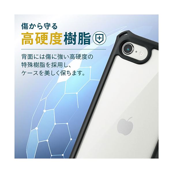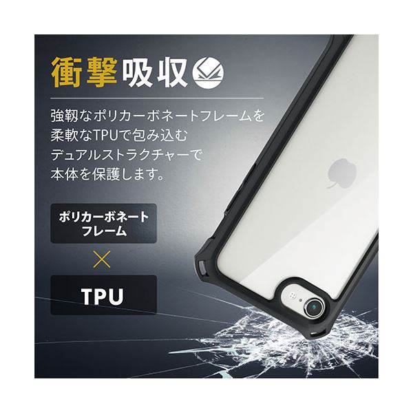 ■機器本体のカラーをそのまま活かせる背面クリアパネルに、6つの衝撃吸収構造を兼ね備えたiPhone SE 第3世代、iPhone SE 第2世代、iPhone 8、iPhone 7用ZEROSHOCKフレームケースです。