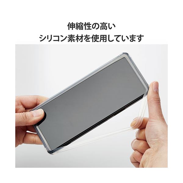 ■伸縮して様々なスマートフォンにフィットするシリコンバンパーです。