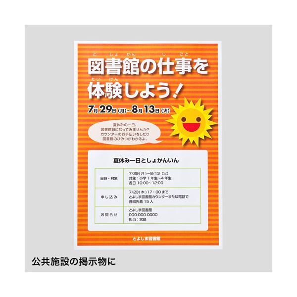 ●いろんなシーンで使えます。(例)野外イベント用の展示POP、飲食店のメニュー、不動産の物件情報、公共施設の掲示物、工場や工事現場の掲示物やマニュアルなど。