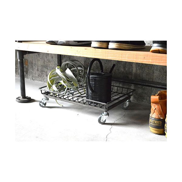 鉄の無機質でインダストリアルな雰囲気が魅力のワイヤートロリー。パントリー収納や植物のディスプレイなど、個性的でカジュアルな魅せる収納に。キャスターが付いているので、棚下などの引き出す収納にも便利です。