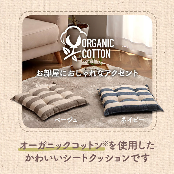 クッション シート 約43×43cm ベージュ オーガニックコットン 綿100% ボーダー 柄 洗える 椅子【代引不可】