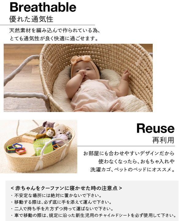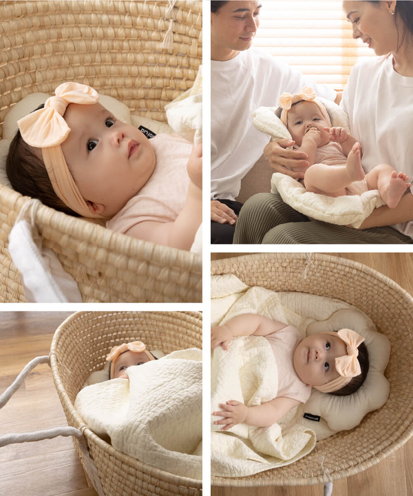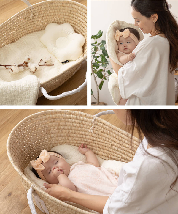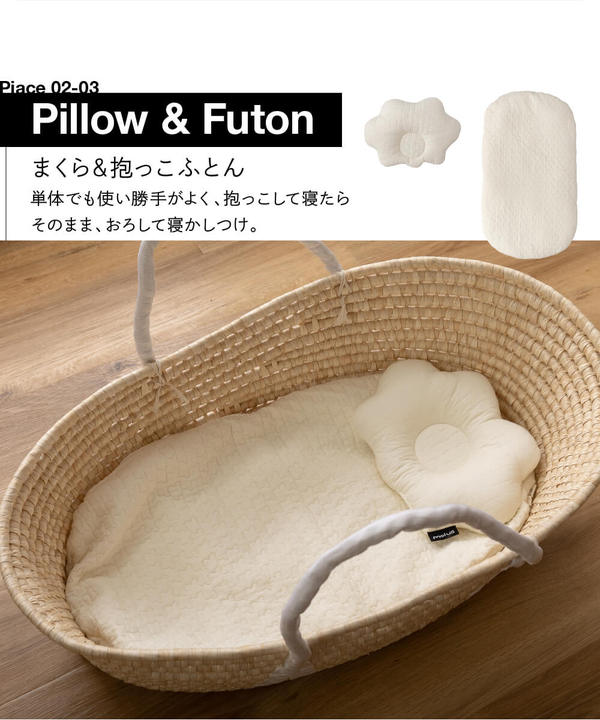 イブルの新商品!カゴ・ふとん・まくらの3点セット。人気のクーファンとイブルのコラボで快適&おしゃれ。おもちゃカゴやお洗濯カゴとしても使える赤ちゃんカゴ。