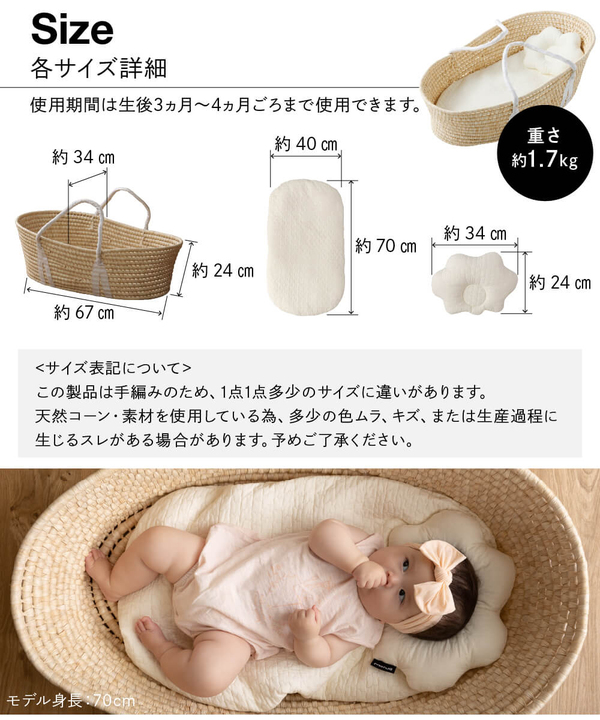 mofua モフア イブル 3点セット 天然コーン手編みのクーファン 抱っこ布団 枕 88×39×29cm くも アイボリー プレゼント 贈り物【代引不可】