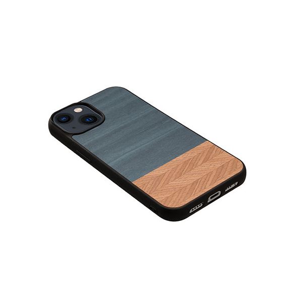 Man & Wood 天然木ケース for iPhone 14 Denim 背面カバー型 I23623i14