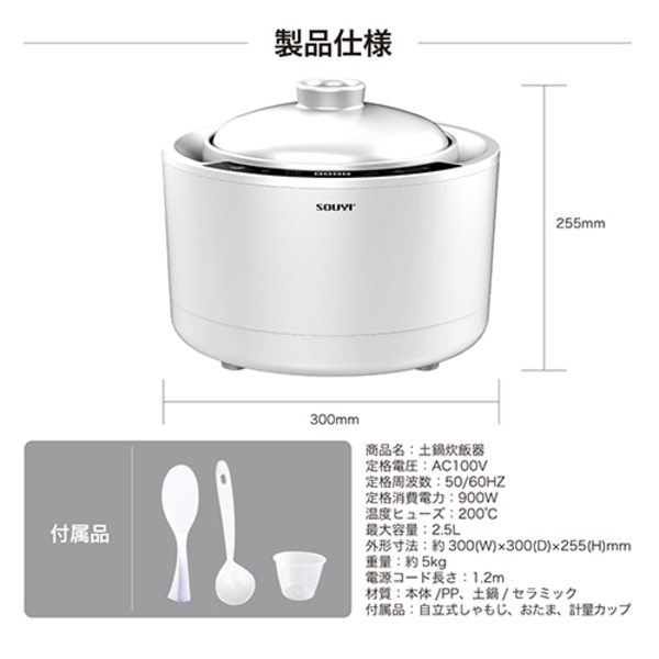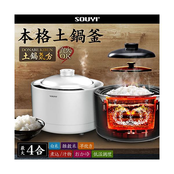 SOUYI JAPAN 本格的な土鍋ごはんを手軽に美味しく味わえる土鍋炊飯器 ホワイト SY-150-WH