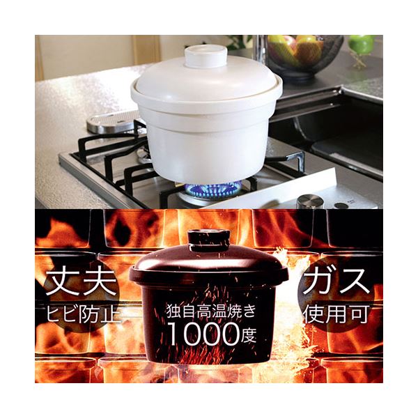 ●直火調理OK!独自の土鍋釜 土鍋炊飯器の内釜は、粘土を約1000℃の熱で焼きあげた為、耐久性が高く、ガスコンロなど直火でも調理することができる土鍋釜です。内釜にはコーティングが施されているので、美味しいおこげがこびりつかずお手入れもとても簡単です。残った食材はそのままに、保存容器として冷蔵庫に入れることもできます。