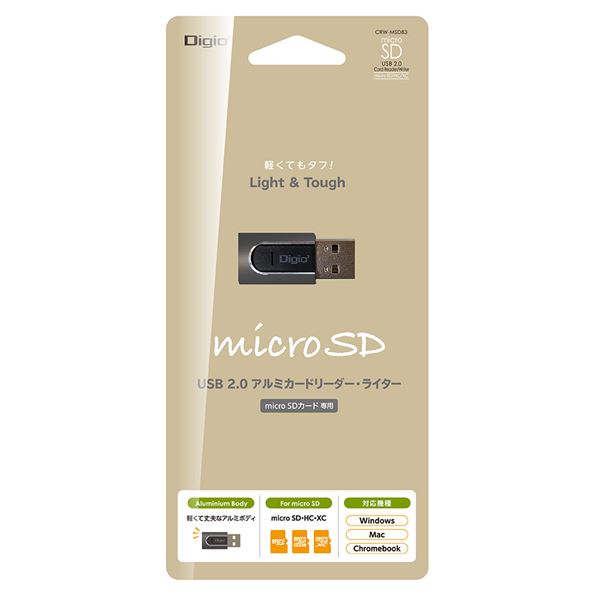●持ち運びしやすい強靭なアルミボデイのmicroSDカード専用USB2.0カードリーダー/ライター。microSDカードのデータをラクラク高速転送。