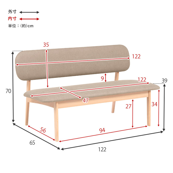 ベンチ 単品 約幅122×奥行65×高さ70cm ライトグレー 木製 ビーチ材 ダイニングベンチ 組立品 リビング ダイニング 在宅ワーク【代引不可】
