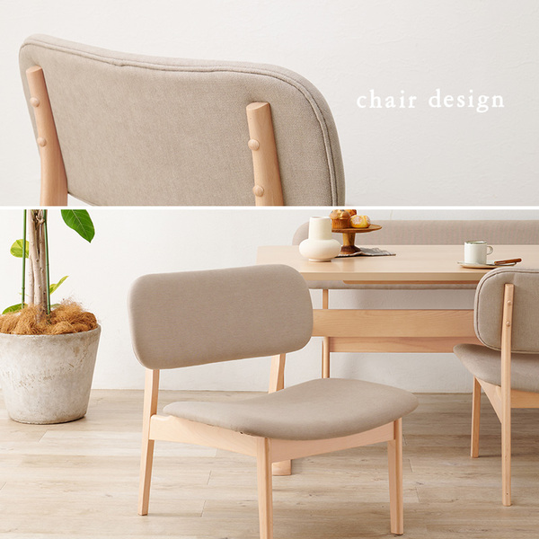 空間が広く感じられる低めのダイニングセット。なめらかな手触りの天然木を贅沢に使用しており、明るく繊細な木目を楽しめます。