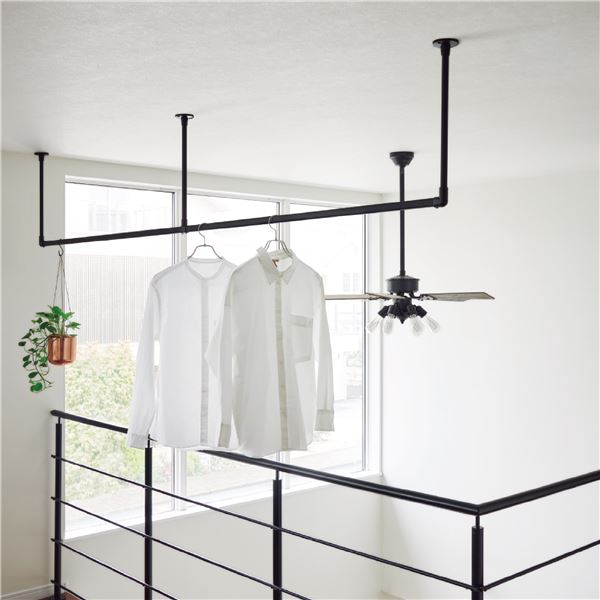 ハンギングバー 約278cm×47cm ブラック H-2 天井付けCタイプセット 日本製 リビング ダイニング 洗濯物 観葉植物【代引不可】