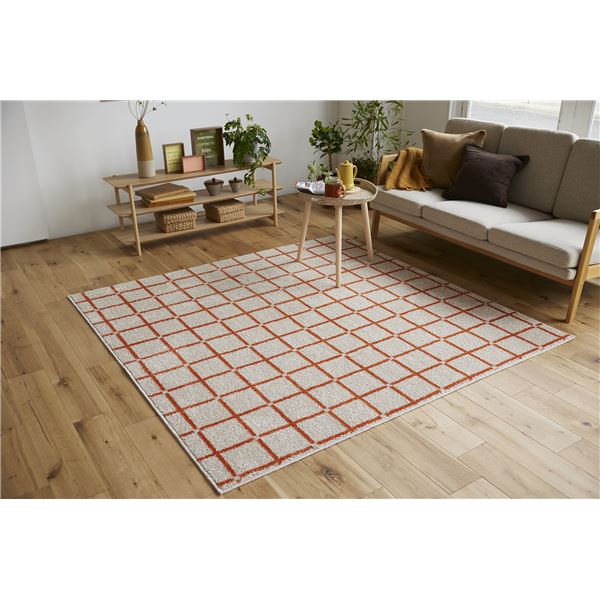 スミノエ 洗える ラグ オセロ 約幅90×長さ130cm オレンジ 日本製【代引不可】