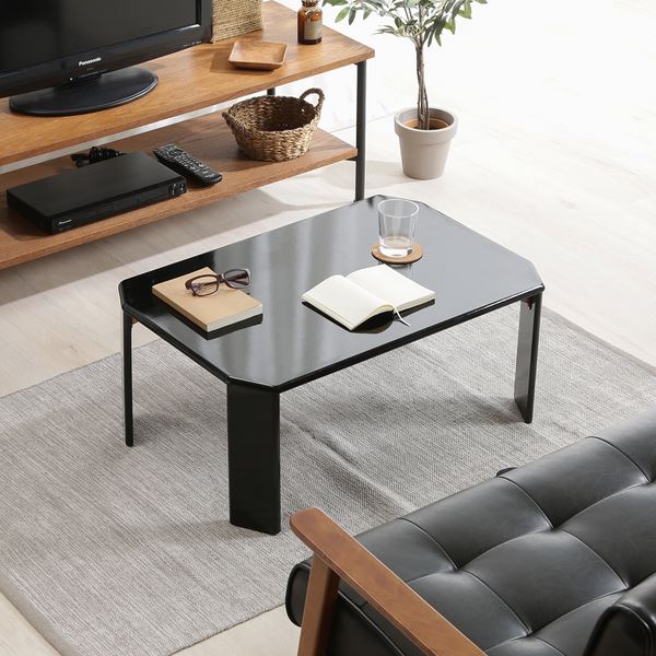 センターテーブル 約幅750mm ブラック キズ防止 滑り止め付き UV ローテーブル 組立式 リビング ダイニング【代引不可】