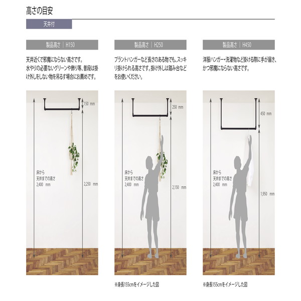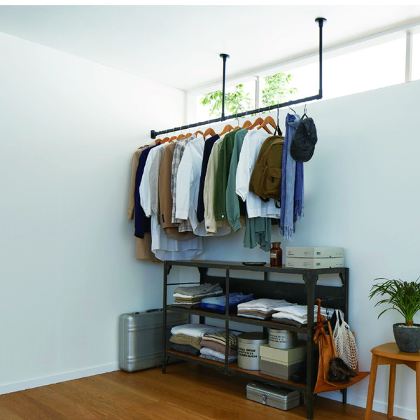 収納バーとして設置することで、お部屋上部の空間を有効的に使い、”見せる収納”が可能です。