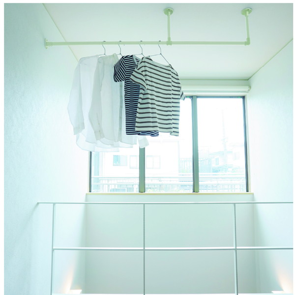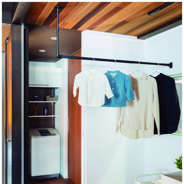 ハンギングバーをランドリーバーとして設置することで、空間を有効に使いつつ日々の家事を効率化できます。共働きのご家庭や洗濯物を室内に干す方にピッタリです。