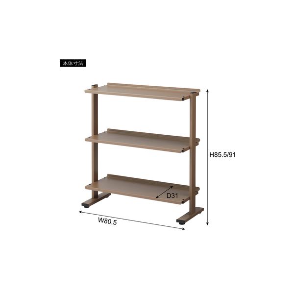 2WAYラック 3段 ホワイト アジャスター付 組立品