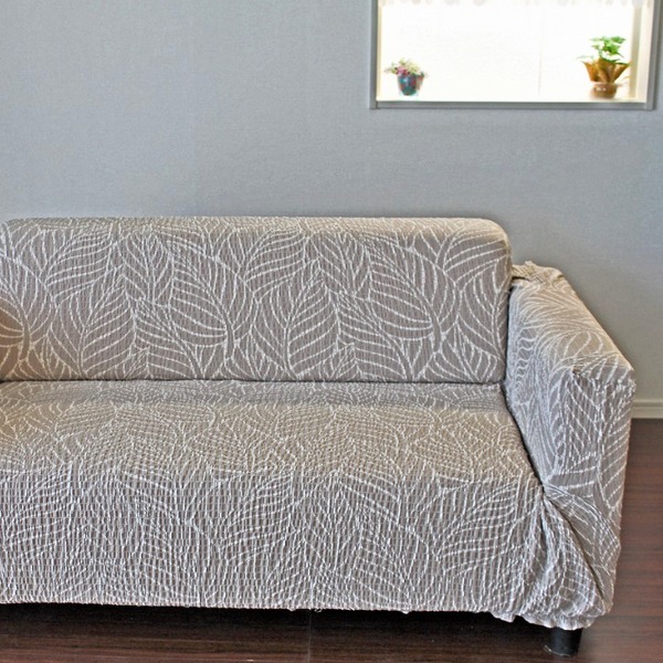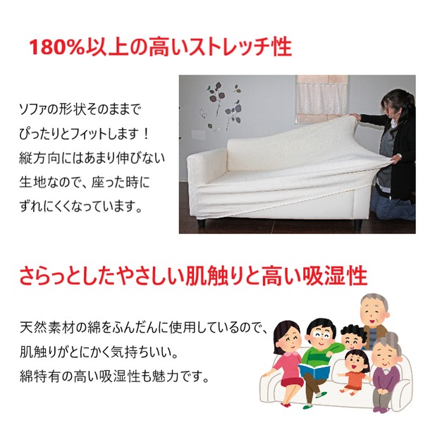 ソファーの形状そのままでぴったりとフィットします!縦方向にはあまり伸びない生地なので、座った時にずれにくくなっています。