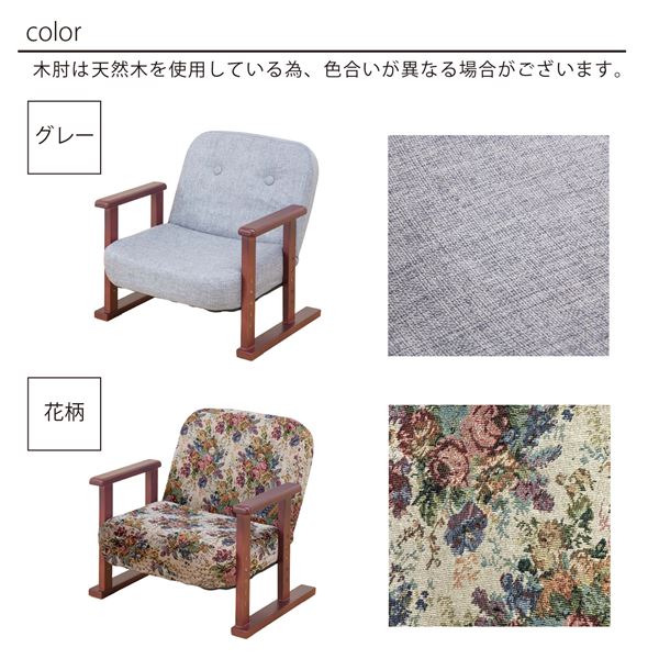 座椅子 パーソナルチェア 約幅54cm 花柄 木製肘付き スチールパイプ リクライニング お座敷 組立品 リビング ダイニング【代引不可】