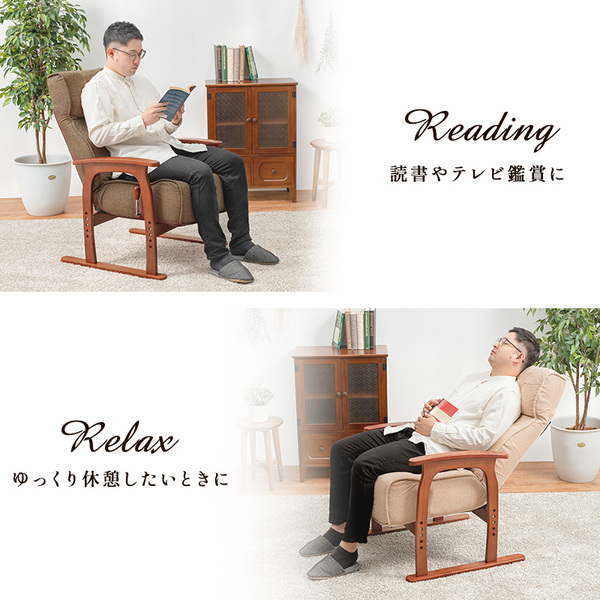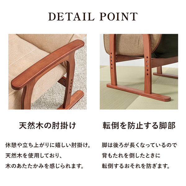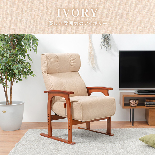 高座椅子 約幅63cm アイボリー 座面高さ4段階調節可 リクライニング 肘付き 組立品 リビング ダイニング インテリア家具【代引不可】
