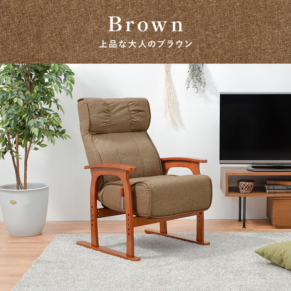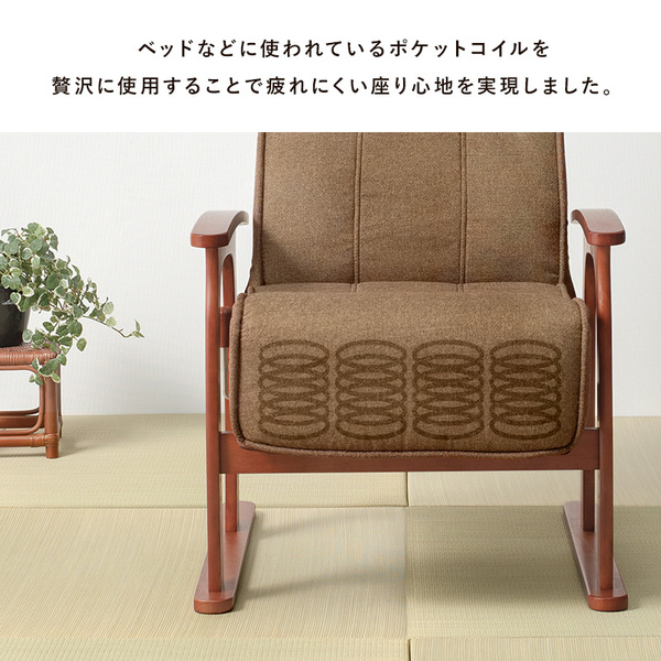 手元レバーで背もたれ角度が調整できる高座椅子。座面の高さも調整できます。座面の構造はポケットコイルスプリングと低反発ウレタンが入っているので座りもGood。