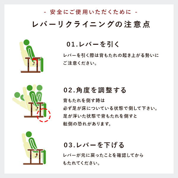 ■特徴:背部/無段階・頭部/14段階リクライニング、座面高さ/4段階調節可
