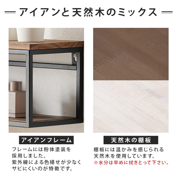 壁面スペースをオシャレなディスプレイに。天然木とアイアンフレームのウォールシェルフ。